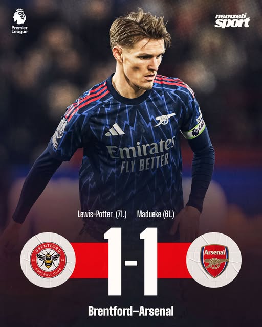 Az Arsenal pontokat vesztett a Brentford otthonában, már csak négy pont az előnye a Man. Cityvel szemben a tabellán.🏴
