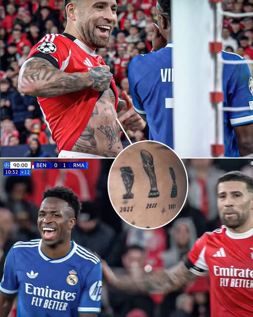 Otamendi a balhéjuk után megmutatta Viníciusnak a hasára tetováltatott kupákat, amiket az argentin válogatottal nyert…