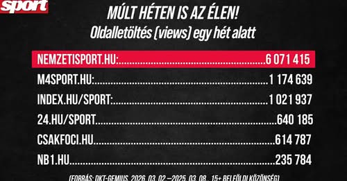 A 2026. március 2-től 2026. március 8-ig tartó időszakban több mint 6 millió oldalt…