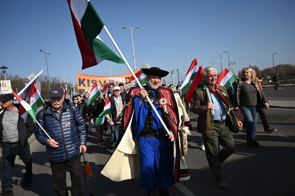 Elindult a Békemenet a Margit hídon. Zeng a „hajrá, Viktor!”.