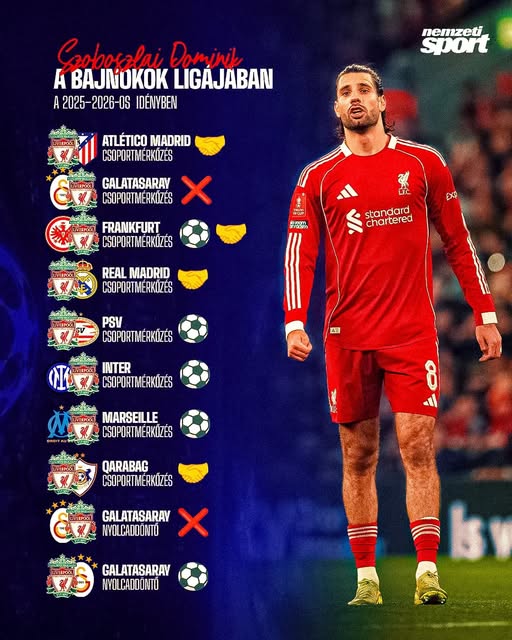 Elképesztő teljesítmény: mindössze két olyan mérkőzés van az egész BL-idényben, amelyen Szoboszlai Dominik nem vállalt szerepet Liverpool-gólban!
