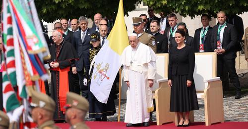 Ferenc pápa ünnepélyes fogadtatása a Sándor-palotánál. Az egyházfő háromnapos apostoli látogatásra érkezett Magyarországra.