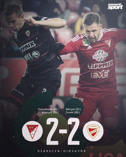 Izgalmas mérkőzésen ikszelt otthon a Debrecen a Diósgyőrrel.