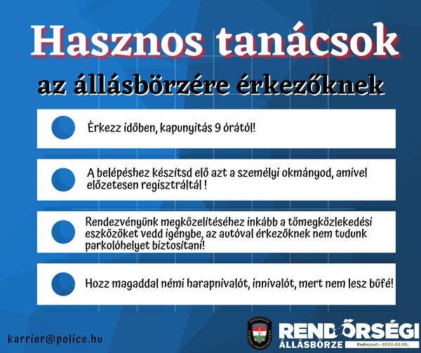 Információk a 2023. február 9-én 10-14 óra között tartandó ORFK állásbörzéről: