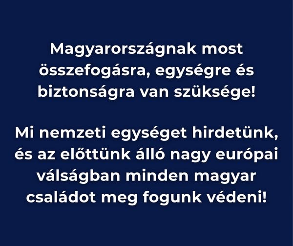 Csak nemzeti egységgel a háta mögött tudja egy tapasztalt nemzeti patrióta kormány megvédeni a magyar családokat a küszöbön álló energia és pénzügyi…