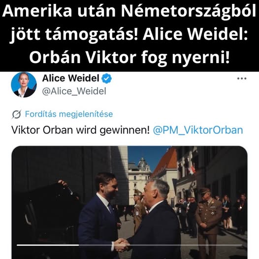 Alice Weidel, és Németország legnagyobb támogatottságú pártja, az AfD is Orbán Viktort támogatja!