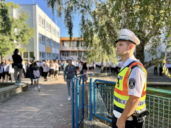 A rendőrök ma is ott voltak, és egész héten ott is lesznek az iskolák előtt, hogy segítsék a közlekedést és vigyázzanak a gyerekek biztonságára.