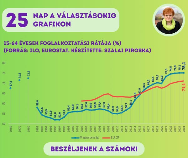 2010-2025 között a 15-74 éves foglalkoztatottak létszáma közel egymillióval nőtt.