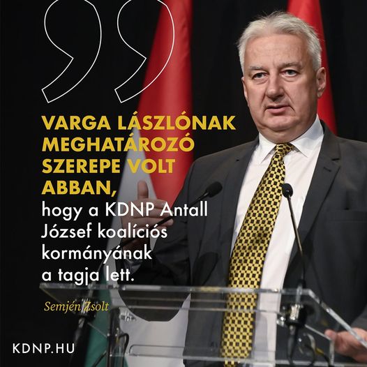 Semjén Zsolt: Varga Lászlónak meghatározó szerepe volt abban, hogy a KDNP Antall József koalíciós kormányának a tagja lett.