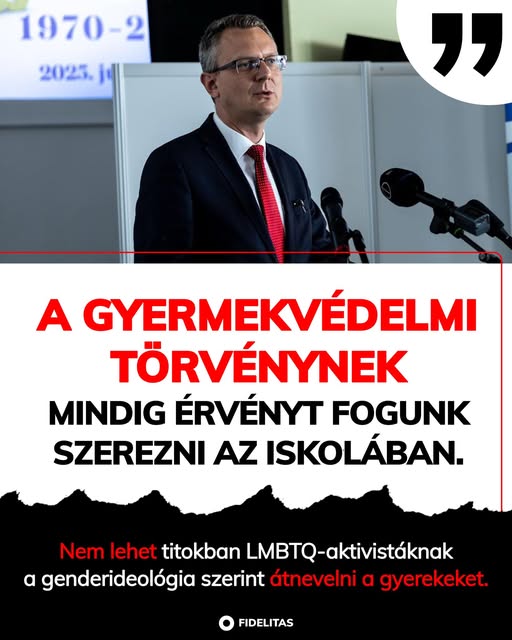 A gyermekvédelmi törvénynek mindig érvényt fogunk szerezni az iskolában. Nem lehet titokban LMBTQ-aktivistáknak a genderideológia szerint átnevelni a gyerekeket. - Rétvári Bence