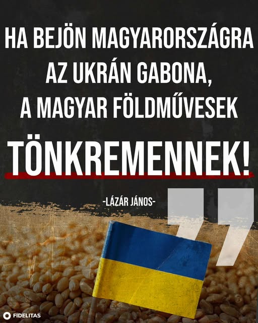 Ha bejön Magyarországra az ukrán gabona, a magyar földművesek tönkremennek! - Lázár János