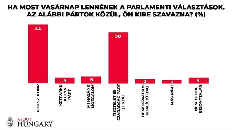 ️ a Fidesz–KDNP vezet (43%) a Tisza Párttal (37%) szemben.