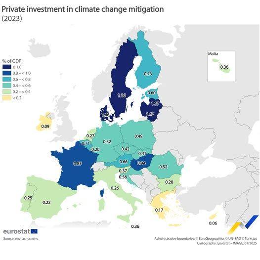 ️ Az Eurostat azt írja, hogy 2023-ban nálunk volt az 5. legnagyobb a klímaváltozást mérséklő magánberuházások aránya a GDP-ben.