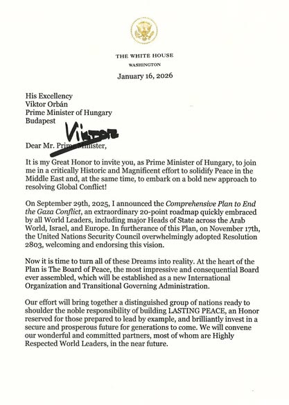 Orbán Viktor magyar miniszterelnök meghívót kapott a Gázai béketanácsba Donald Trump amerikai elnöktől.