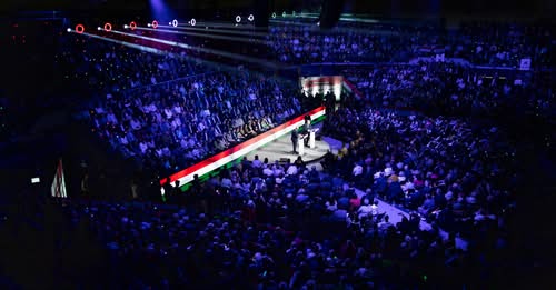 Együtt szurkolnak a magyar-lengyel drukkerek a futsal eb-n.