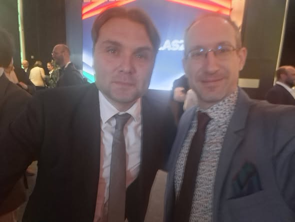 Gubík Lászlóval, Mészáros Nóraval, Kötter Tamással Enikő Szakossal, Kocsis Mátéval és Lentulai Krisztián kollégával Orbán Viktor évértékelőjén.