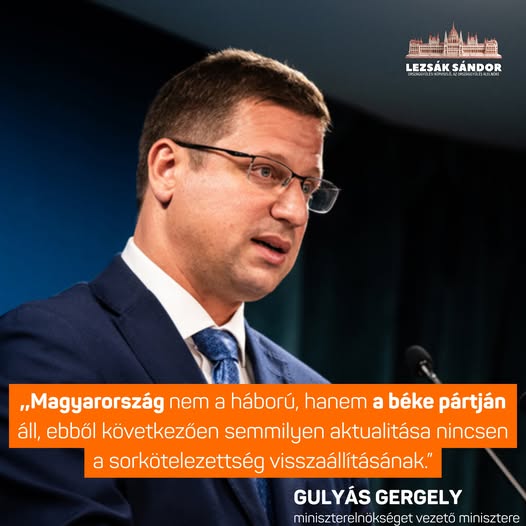 Magyarország nem a háború, hanem a béke pártján áll, ebből következően semmilyen aktualitása nincsen a sorkötelezettség visszaállításának.