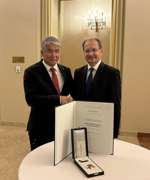Őexcellenciája Sultan RAEV, a "Türk UNESCO", azaz a TÜRKSOY főtitkára épp most vette át a Magyar Érdemrend Tisztikeresztje állami kitüntetést Hankó Balázskulturális minisztertől a Pesti Vigadóban…