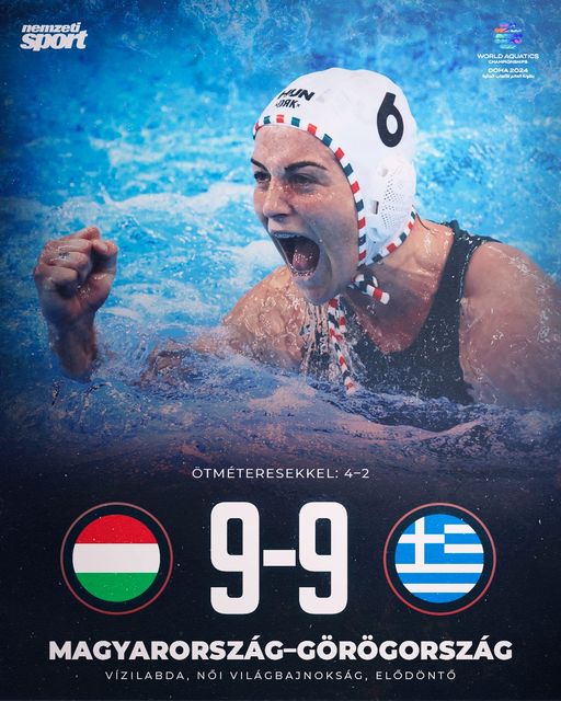 Görögországot legyőzve döntőbe jutott a magyar női vízilabda-válogatott a dohai világbajnokságon!