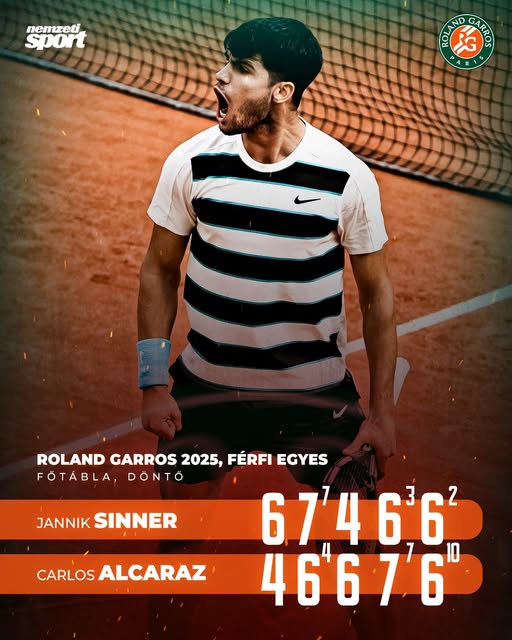 Minden idők LEGHOSSZABB ROLAND-GARROS-döntőjét láttuk: Carlos Alcaraz visszajött kétszettes hátrányból, és öt és fél óra alatt legyőzte Jannik Sinnert!
