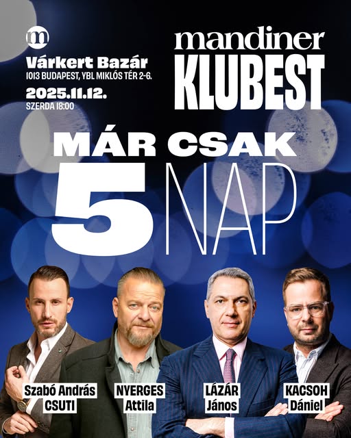 Mindössze 5 nap, és kezdetét veszi a Mandiner egyik legizgalmasabb estéje! Ön regisztrált már? 👉 Ha nem, itt megteheti: https://vist.ly/4da5e