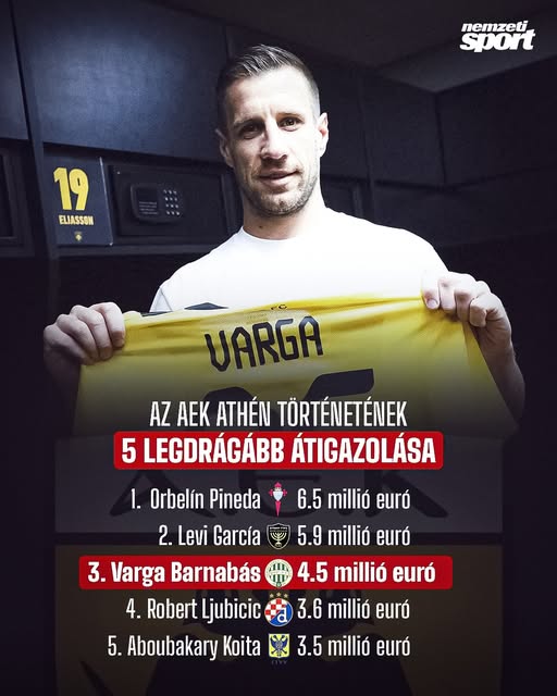 HIVATALOS! Varga Barnabás az AEK Athén futballistája!