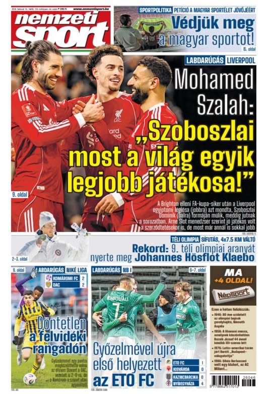 Szalah dicsérte Szoboszlait; A héten Pécs–Sopron kosárrangadó következik – a Nemzeti Sport hétfői számából ajánljuk: https://buff.ly/2AEtZDz
