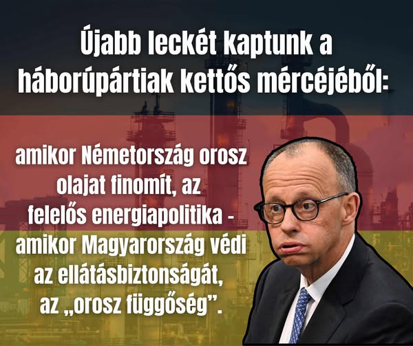 ️Újabb leckét kaptunk a háborúpártiak kettős mércéjéből: amikor Németország orosz olajat finomít, az felelős energiapolitika – amikor Magyarország védi az…
