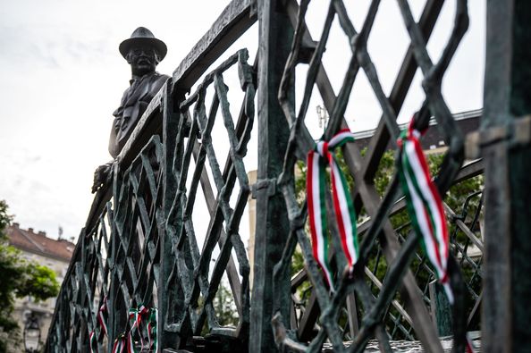 Nagy Imre és mártírtársai kivégzésének 65., újratemetésük 34. évfordulóján az emlékezés koszorúit helyezték el a néhai magyar miniszterelnök Jászai Mari téri szobránál.