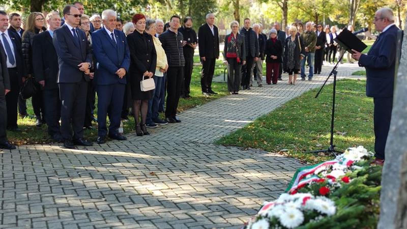 Polics József polgármester úrral fejet hajtottunk 1956 komlói mártírjai emléke előtt.
