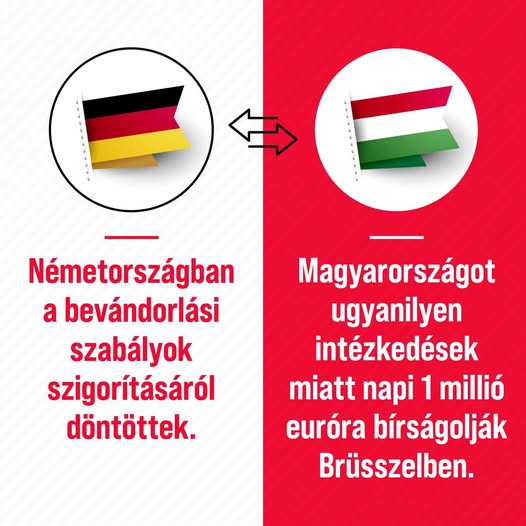 Németországban a bevándorlási szabályok szigorításáról döntöttek. Magyarországot ugyanilyen intézkedések miatt napi 1️⃣ millió euróra bírságolják Brüsszelben