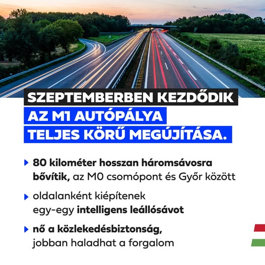 Baleset, csúcsforgalom vagy munkavégzés idején forgalmi sávként is használhatóak lesznek az M1 sztráda új intelligens leállósávjai.