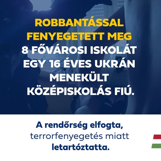️ Robbantással fenyegetett meg 8 fővárosi iskolát egy 16 éves ukrán menekült középiskolás fiú.
