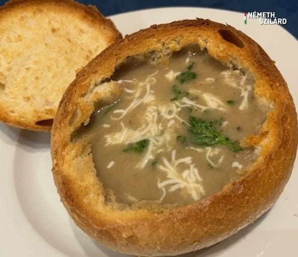 Gombakrémleves és csülök káposztaágyon.