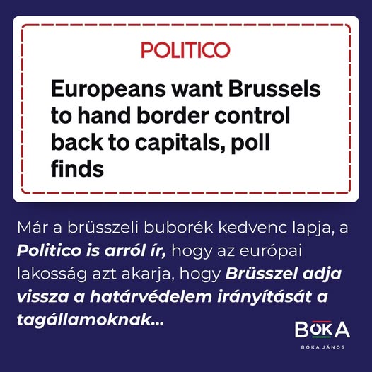 Már a brüsszeli buborék kedvenc lapja, a Politico is arról ír, hogy az európai lakosság azt akarja, hogy Brüsszel adja vissza a határvédelem irányítását a tagállamoknak…