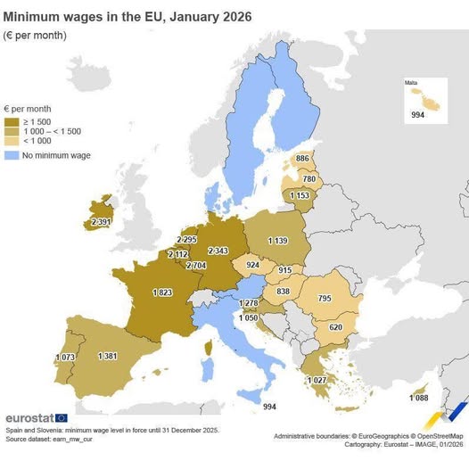 2026 elején az EU 27 tagállamából 22-ben volt minimálbér. A számok jól mutatják a különbségeket: