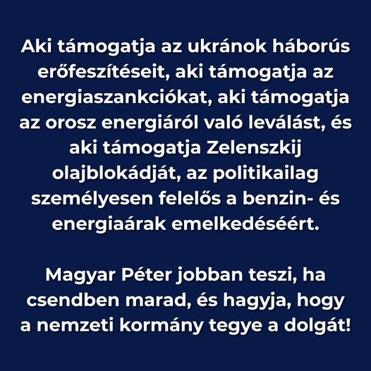 Orbán Viktor: az ukrán olajblokád és a közel-keleti háború miatt a kőolaj ára Magyarországon is robbanásszerű növekedésnek indult. Ebben a helyzetben a Zelenszkij által bevezetett ukrán olajblokád a lehető legsúlyosabb fenyegetést jelenti immár nem csak Magyarország és Szlovákia, de az egész Európai Unió számára.