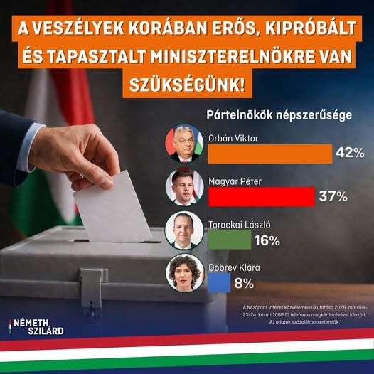 A Nézőpont Intézet kutatása az MTVA-val együttműködésben 2026. március 23. és 24. között, 1000 fő telefonos megkérdezésével készült. ✍️