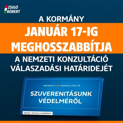 A kormány január 17-ig meghosszabbítja a nemzeti konzultáció válaszadási határidejét.
