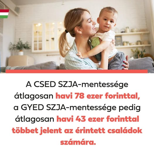 A CSED SZJA-mentessége átlagosan havi 78 ezer forinttal, a GYED SZJA-mentessége pedig átlagosan havi 43 ezer forinttal többet jelent az érintett családok számára