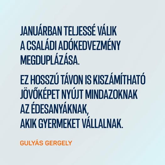 Januárban teljessé válik a családi adókedvezmény megduplázása, valamint életbe lép a 30 év alattiak után a 40 év alatti kétgyermekes édesanyák szja-mentessége.