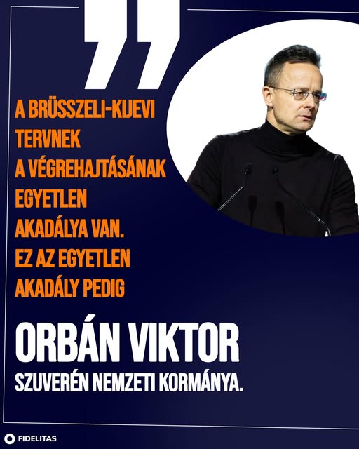 A brüsszeli-kijevi tervnek a végrehajtásának egyetlen akadálya van. Ez az egyetlen akadály pedig Orbán Viktor szuverén nemzeti kormánya. - Szijjártó Péter