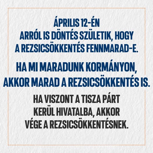 Az április 12-i választás tétje, hogy ez így marad-e vagy megengedjük Brüsszelnek és kitartottjainak, a Tiszának, hogy megszüntessék.