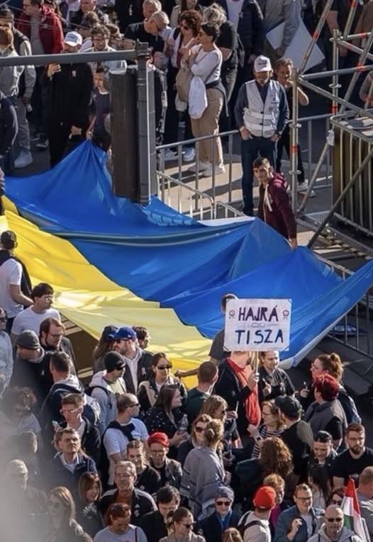 Egy kép a Tiszás menetről. Összenő, ami összetartozik: nekik Ukrajna, nekünk Magyarország.