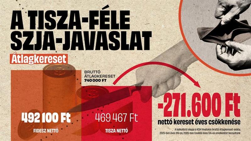 Kiszámoltuk: már az átlagkeresetet is keményen megvágná a Tisza-féle SZJA-emelés (GRAFIKON)