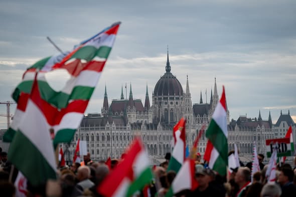 Nemzeti színű zászlók és településtáblák a kézben. Már javában gyülekeznek az emberek Budapesten, hogy a Kossuth térre átvonulva meghallgassák Orbán Viktor miniszterelnök ünnepi beszédét.