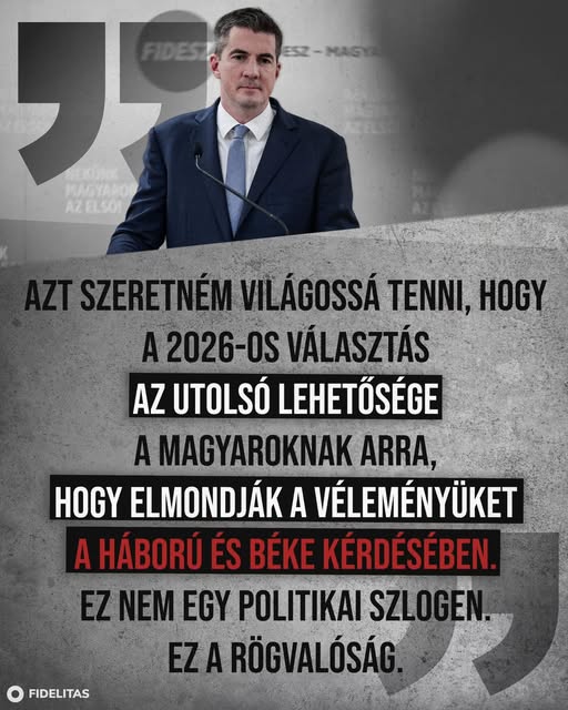 Azt szeretném világossá tenni, hogy a 2026-os választás az utolsó lehetősége a magyaroknak arra, hogy elmondják a véleményüket a háború és béke kérdésében. Ez nem egy politikai szlogen. Ez a…