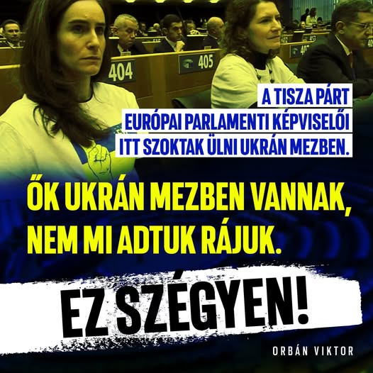 Orbán Viktor a brüsszeli EU-csúcs előtt: a Tisza Párt európai parlamenti képviselői itt szoktak ülni ukrán mezben.