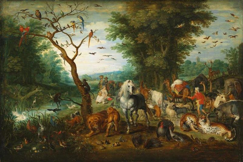 Paradicsomi táj Noé bárkájába tartó állatokkal