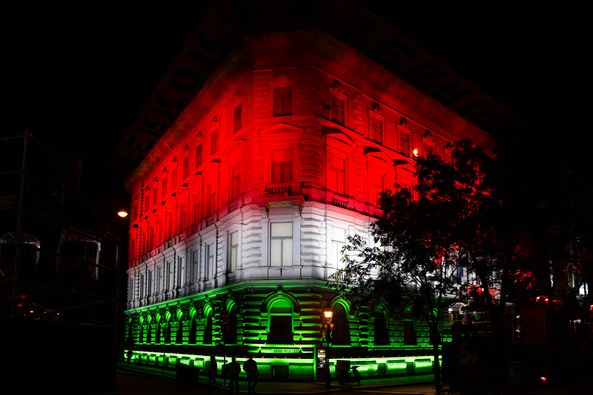 Ünnepi díszbe öltözött a Terror Háza Múzeum, a Külügyminisztérium és a Műszaki Egyetem épülete is.